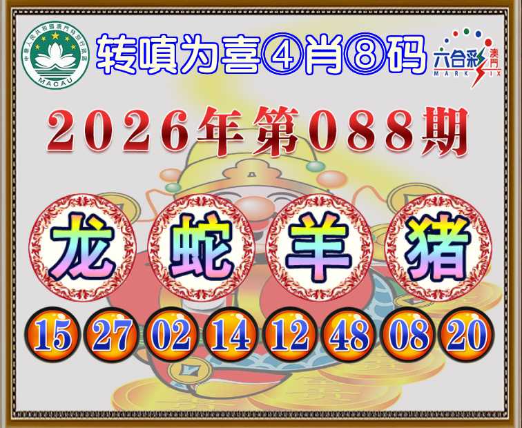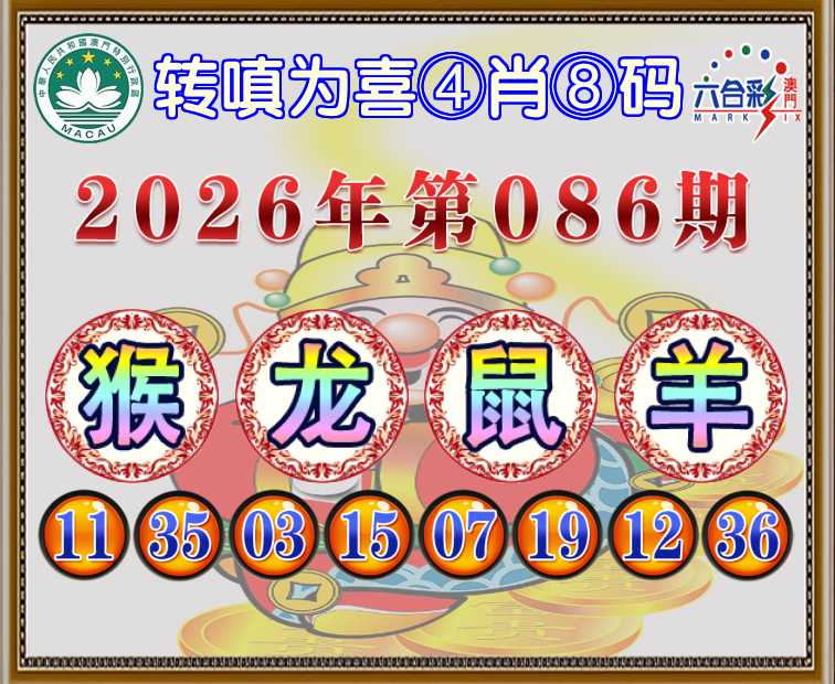 086期:〖转嗔为喜〗 ④肖⑧码【猴龙鼠】开:羊12