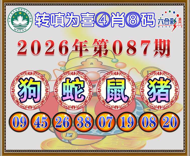087期:〖转嗔为喜〗 ④肖⑧码【狗鼠猪】开:蛇26