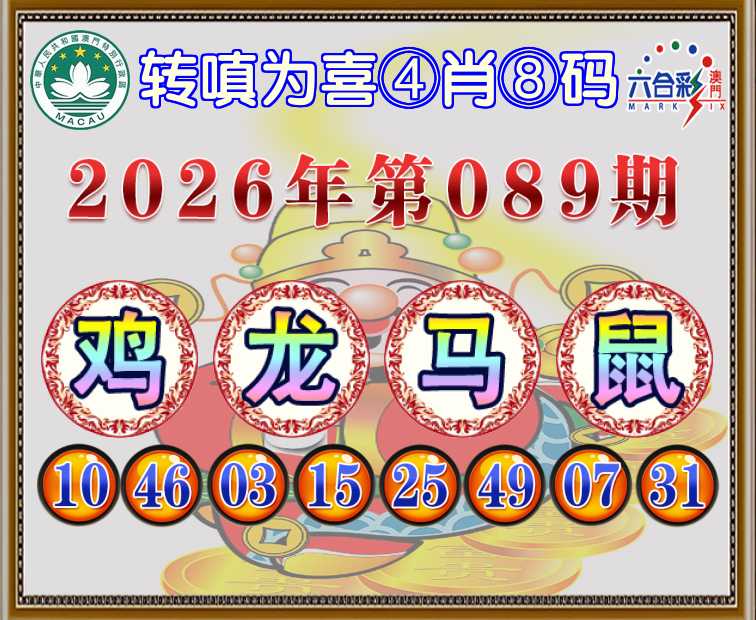 089期:〖转嗔为喜〗 ④肖⑧码【鸡龙鼠】开:马49