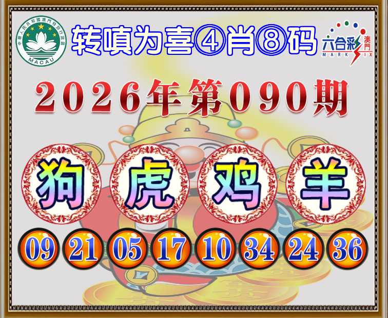 090期:〖转嗔为喜〗 ④肖⑧码【狗虎鸡】开:羊36