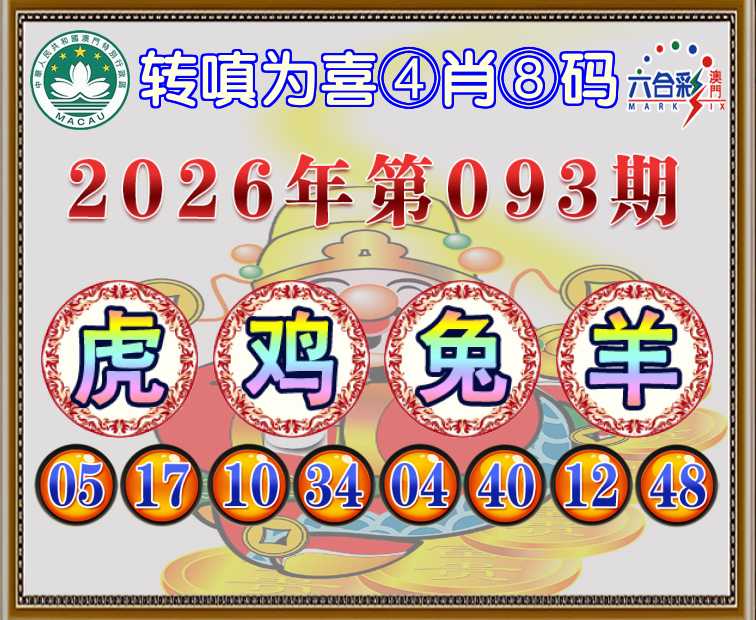 093期:〖转嗔为喜〗 ④肖⑧码【虎鸡羊】开:兔40