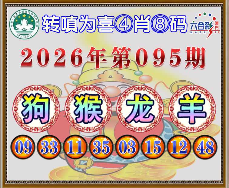 095期:〖转嗔为喜〗 ④肖⑧码【狗龙羊】开:猴35