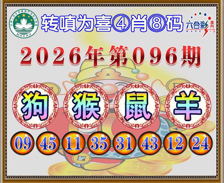 096期:〖转嗔为喜〗 ④肖⑧码【狗猴羊】开:鼠43