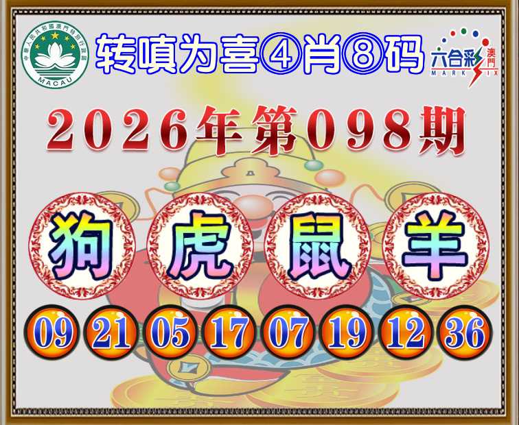098期:〖转嗔为喜〗 ④肖⑧码【狗鼠羊】开:虎17