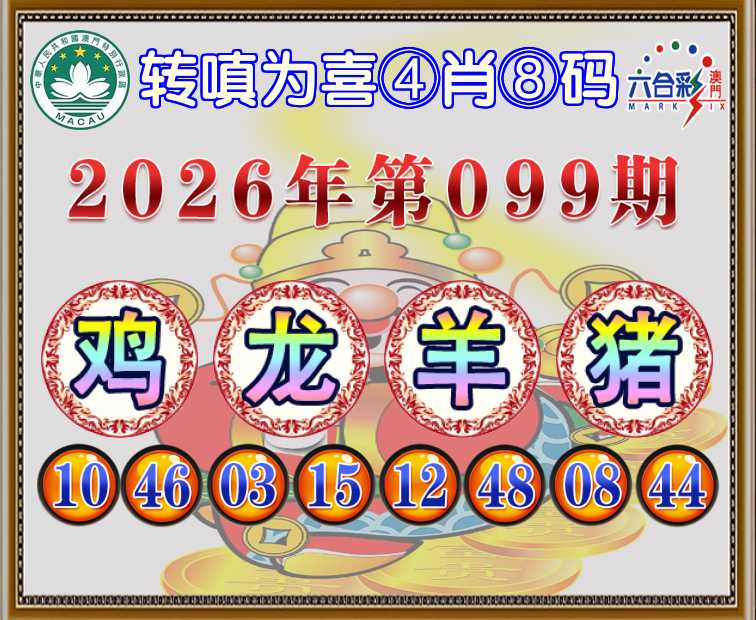 099期:〖转嗔为喜〗 ④肖⑧码【鸡龙猪】开:羊12