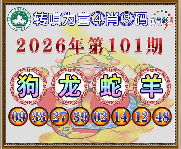 101期:〖转嗔为喜〗 ④肖⑧码【狗蛇羊】开:龙39