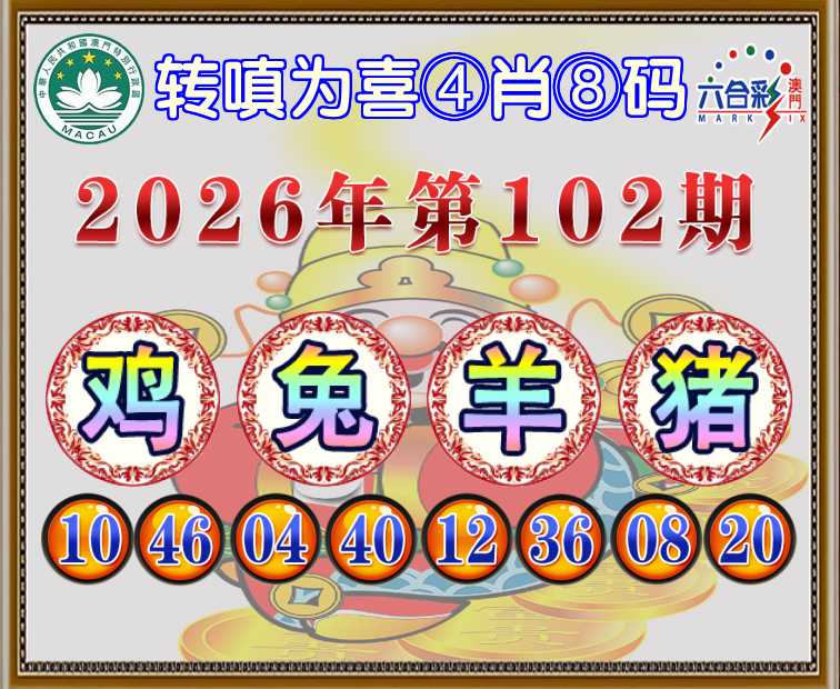 102期:〖转嗔为喜〗 ④肖⑧码【鸡兔羊】开:猪20
