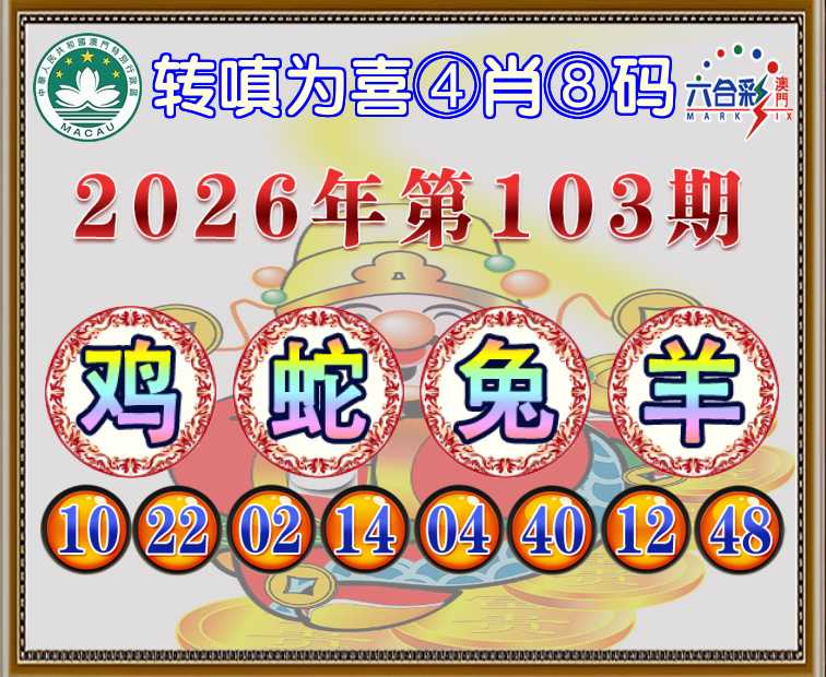 103期:〖转嗔为喜〗 ④肖⑧码【鸡蛇兔羊】开:牛06