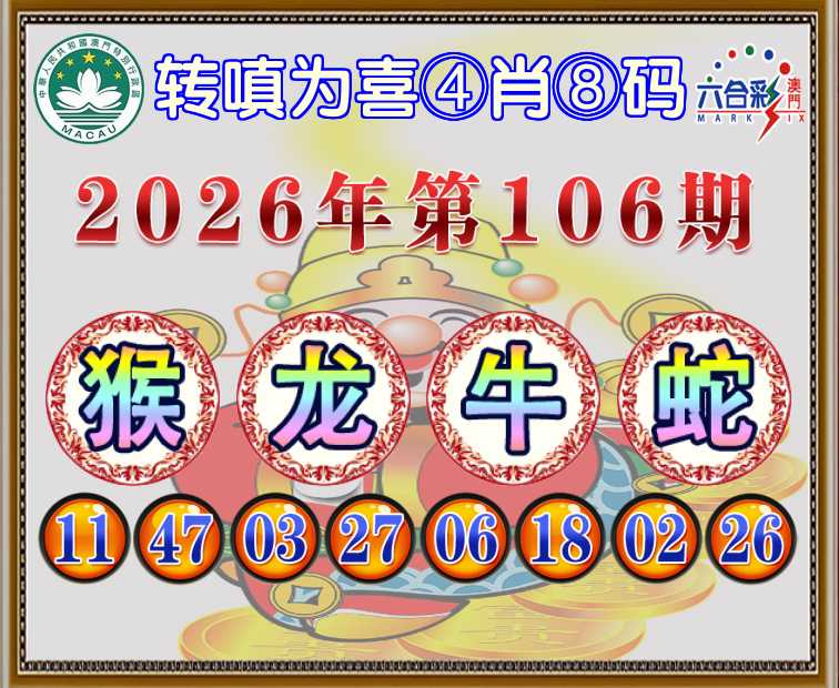 106期:〖转嗔为喜〗 ④肖⑧码【猴龙牛蛇】开:00准